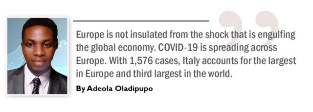 Europe is not insulated from the shock that is engulfing the global economy. COVID-19 is spreading across Europe. With 1,576 cases, Italy accounts for the largest in Europe and third largest in the world. Many firms in Europe are saying that the Coronavirus is affecting their operations, with some laying off workers because sales and profit had slowed down while others are temporarily shutting down factories to prevent the spread of the disease. Diageo, the biggest producer of whisky said that the close down of restaurants and bars in China because of COVID-19, could dip its profit by up to 200 million pounds.