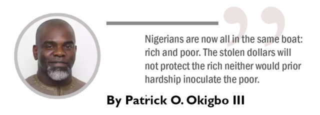 Nigerians are now all in the same boat: rich and poor. The stolen dollars will not protect the rich neither would prior hardship inoculate the poor. Nigeria does not have enough respirators so both the rich and the poor who fall victim of the virus will face the same fate. Nigeria does not have the N-95 masks so both those who stole the money meant for the masks and those who have suffered all along will bear the pain. We are stuck in the cesspool together. Cue the music.