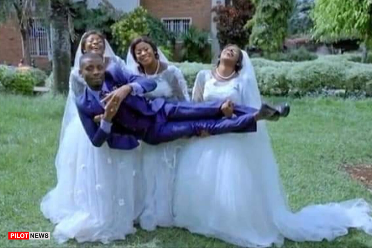 A man from the Democratic Republic of the Congo, identified simply as Luwizo has tied the knot with triplets in a colorful wedding ceremony.
