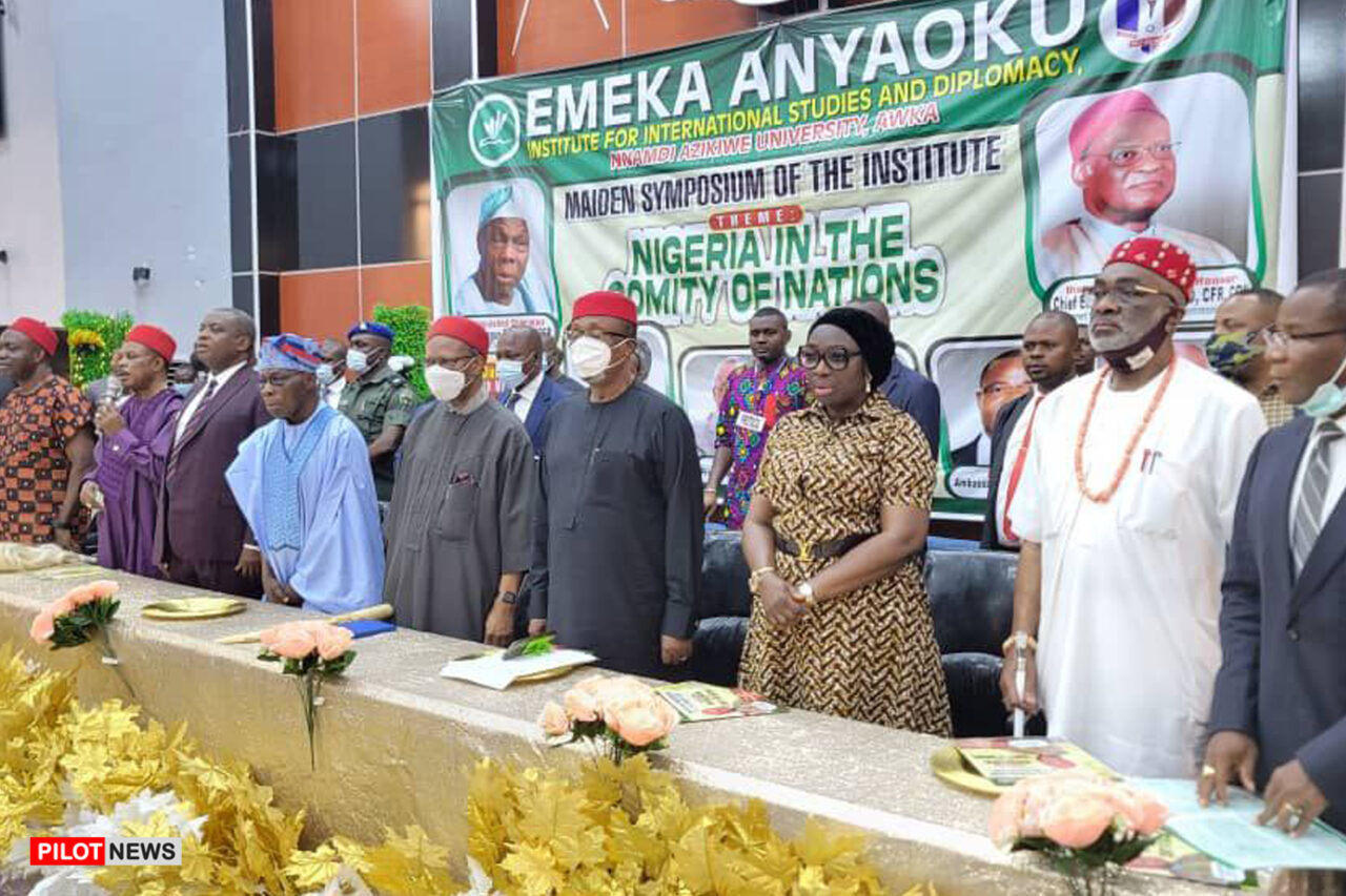 AWKA — Symposium of The Emeka Anyaoku Institute of International Studies and Diplomacy held today Tuesday, at the Nnamdi Azikiwe University ASUU building. The occasion which attracted dignitaries, fine diplomats, academia, and political leaders, is the first organized by The Emeka Anyaoku Institute of International Studies and Diplomacy, which was established months ago and which building is still in progress within the premises of Nnamdi Azikiwe University, Awka.
