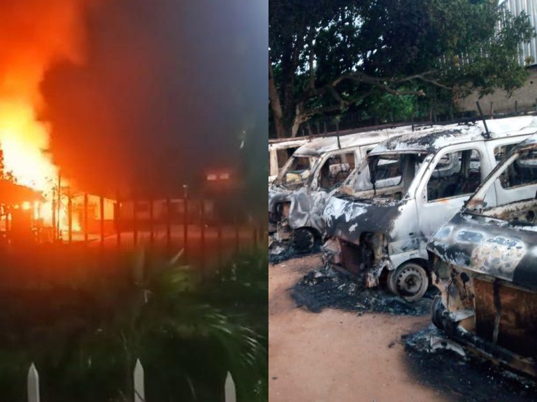Videos and pictures circulating online also showed that the entire buildings were reduced to rubbles, while vehicles parked inside the local government secretariat were also burnt to ashes.