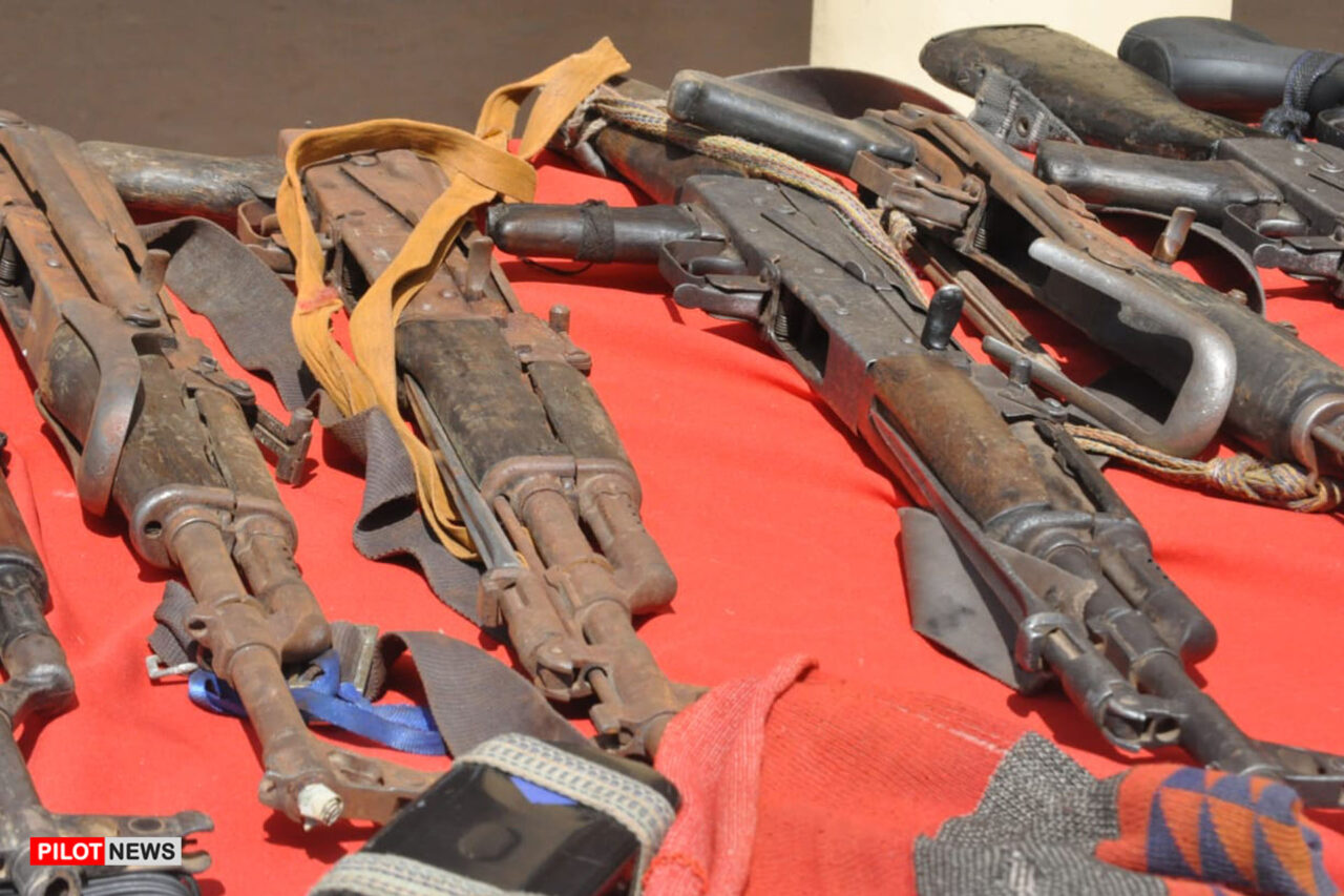 Other exhibits are: Live Ammunitions -218, Live Cartridges-2, Den gun/Pump Action-6, SMG Gun-1, Motor vehicle/Tricycle/motorcycle-5, Military Camouflage Uniform-1, Hand Bag-2, Mats-4, Solar Panel-1, Lubricant Oil Rubber-2, Roasted Sheep Skull-2, Pad locks/Keys/Chains- 4, Magazine-11, Magazine Spring-1, GSM/Handsets-2, Cutlass/Knife/Other Dangerous Weapon-10, Domestic Animals-34, T.V Sets-2, Generator-3, Charms-2, and Raps of Indian Hemp/Tramadol.