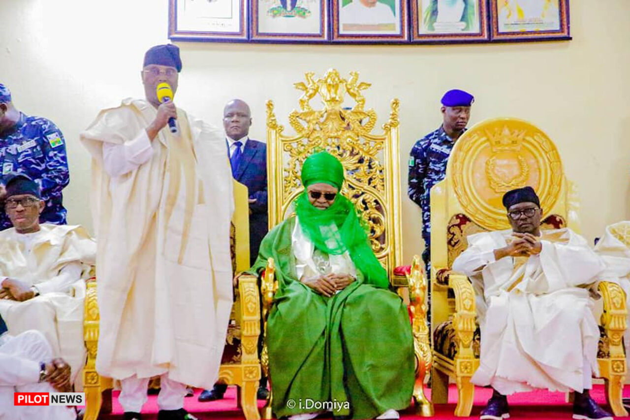 Atiku who holds the title of Waziri Adamawa paid homage to Lamido Adamawa Dr. Muhammadu Barkindo Aliyu Mustapha in his place in Yola town.