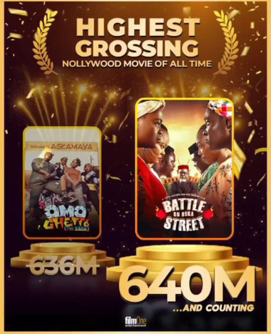 Funke Akindele’s ‘Battle On Buka Street’ has become Nollywood’s highest-grossing film with over N640 million after nine weeks of release.