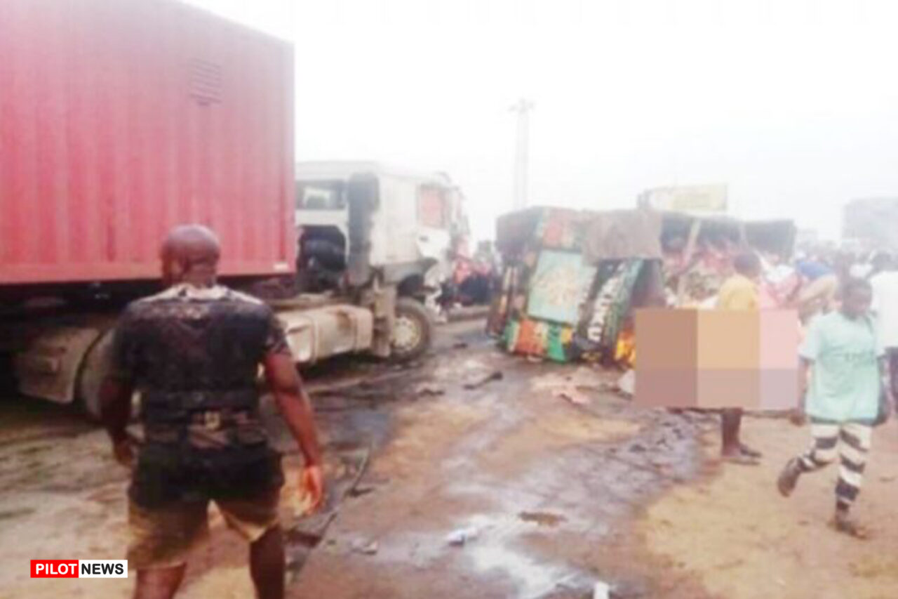 At least three people were killed and three tricycles crushed in an accident at the Onitsha end of the River Niger Bridge in Anambra State.