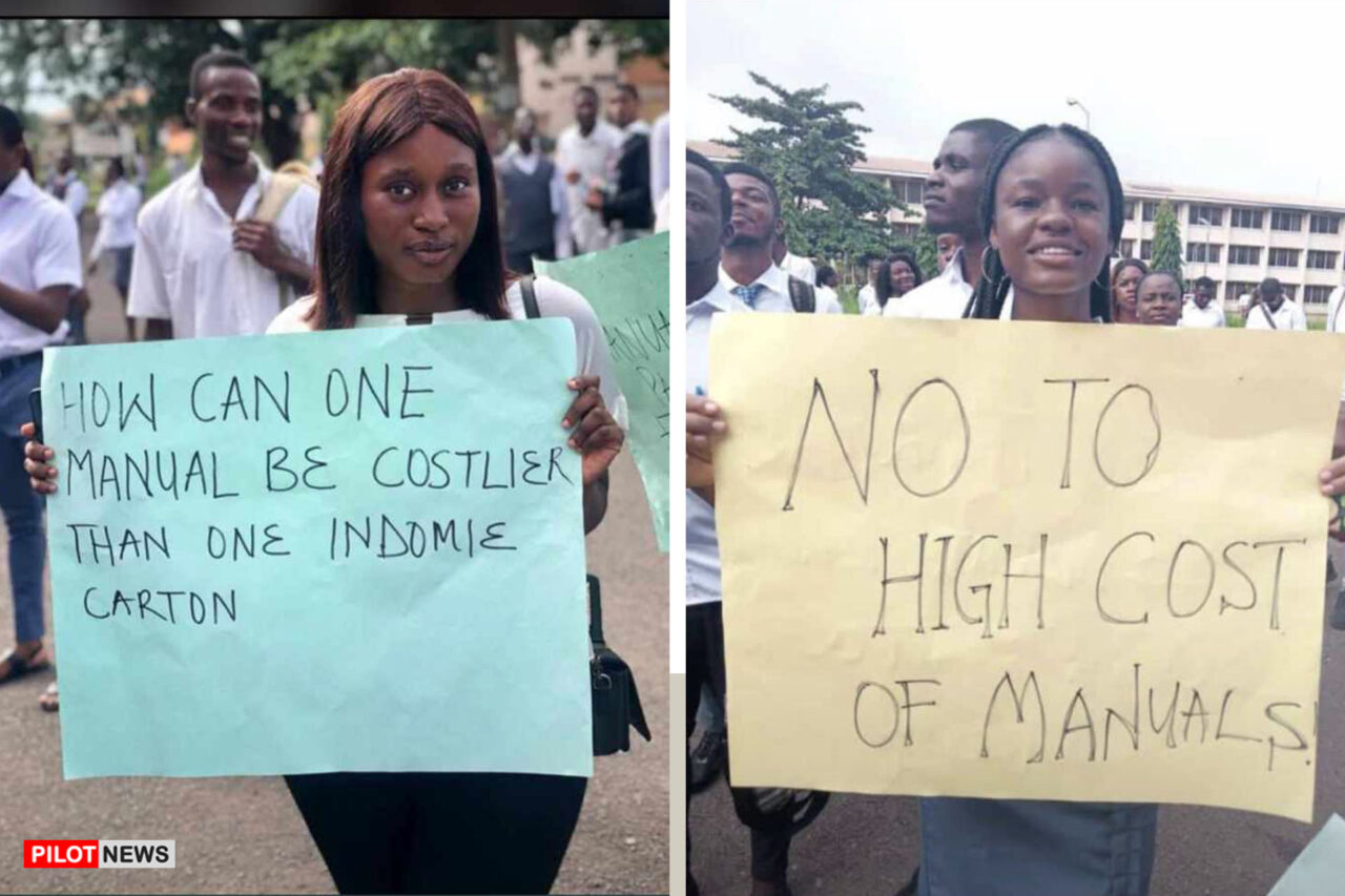 “We are also protesting against the high cost of practical manuals (materials) which we have been mandated to buy. These materials run into thousands every semester.