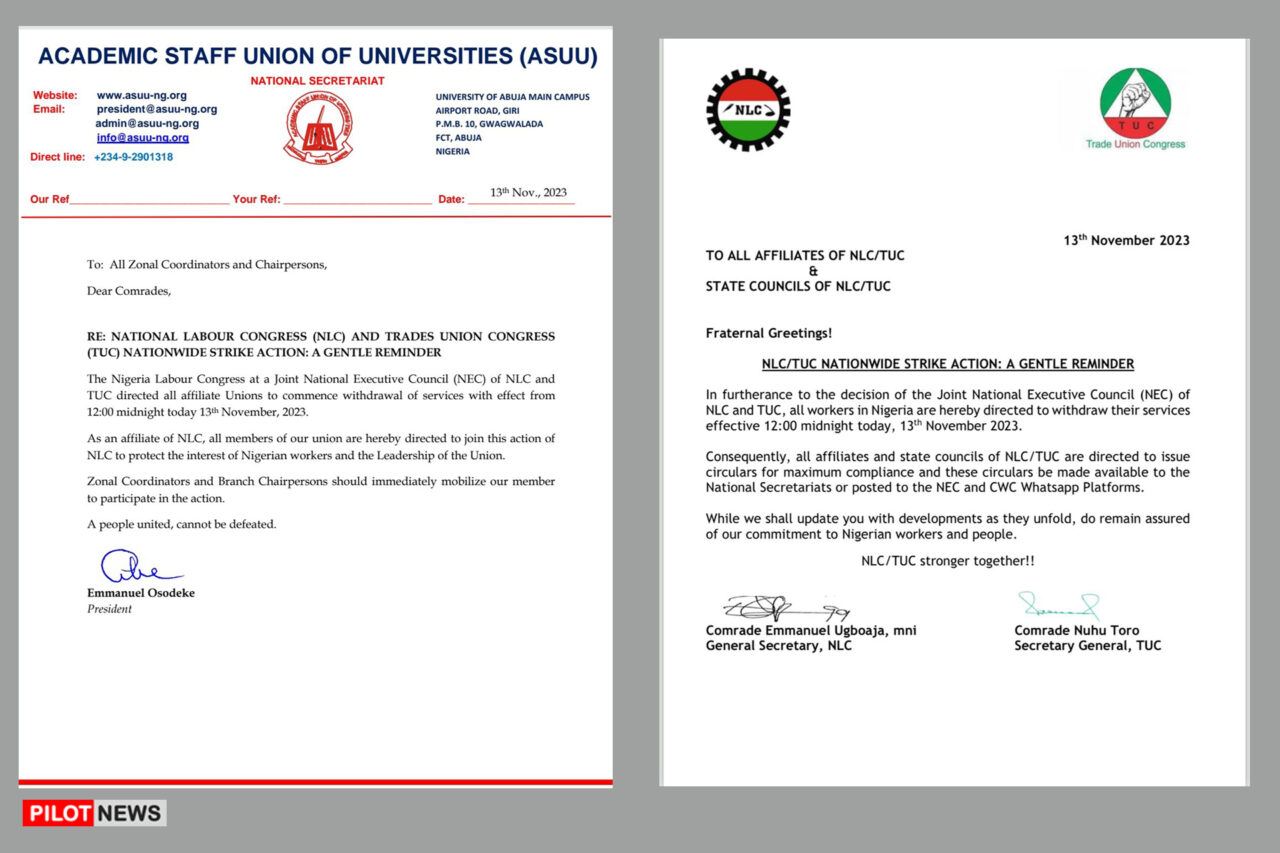 The labour unions, NLC and TUC, last Tuesday, November 7, made their joint plans to withdraw their services today public.