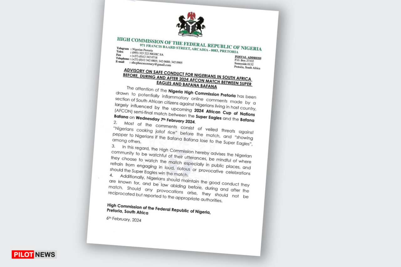 “The High Commission hereby advises the Nigerian community to be watchful of their utterances, be mindful of where they choose to watch the match, especially in public places, and refrain from engaging in loud, riotous or provocative celebrations should the Super Eagles win the match,” the statement read.