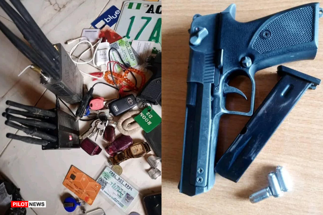 He said items recovered from them were a Toyota Hilux, a Beretta Pistol, three live ammunition, Two Anti-trackers, Five Handsets, Foreign Currency, and others.
