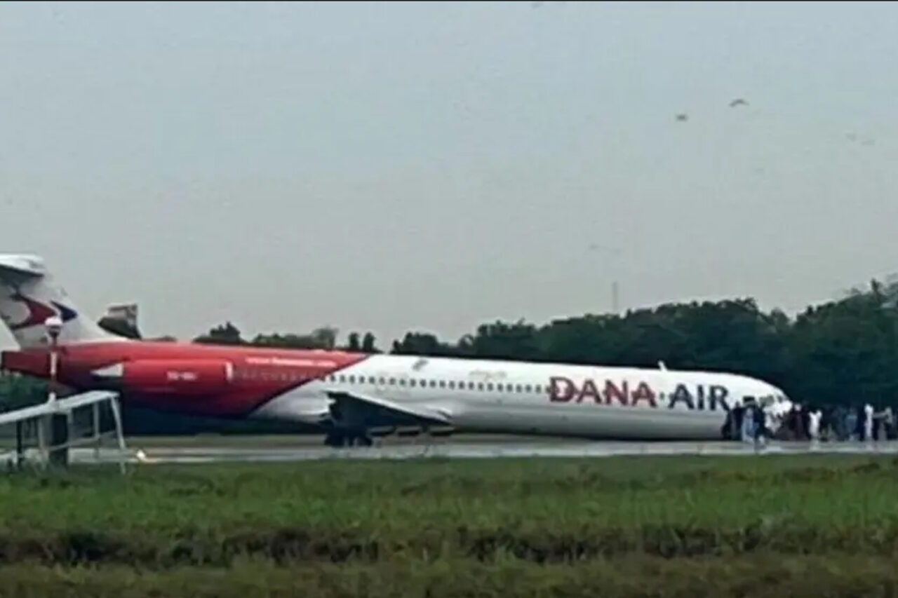 A Dana Air aircraft with registration number, 5N BKI, flying from Abuja to Lagos on Tuesday morning skid off the runway while landing at the Murtala Mohammed airport in Lagos.