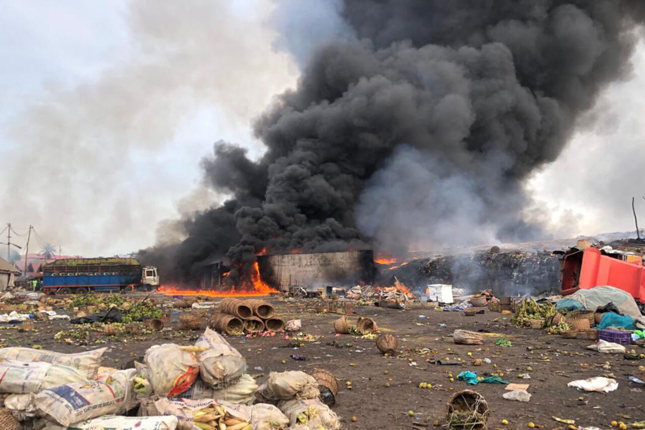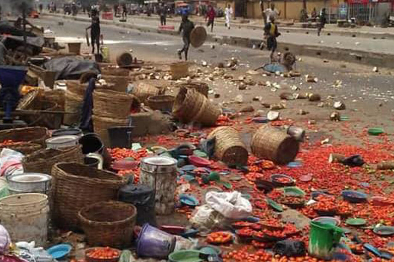 Violence erupted in the Ile-Epo area of Lagos on Thursday, leaving a section of the market burnt and many people injured.
