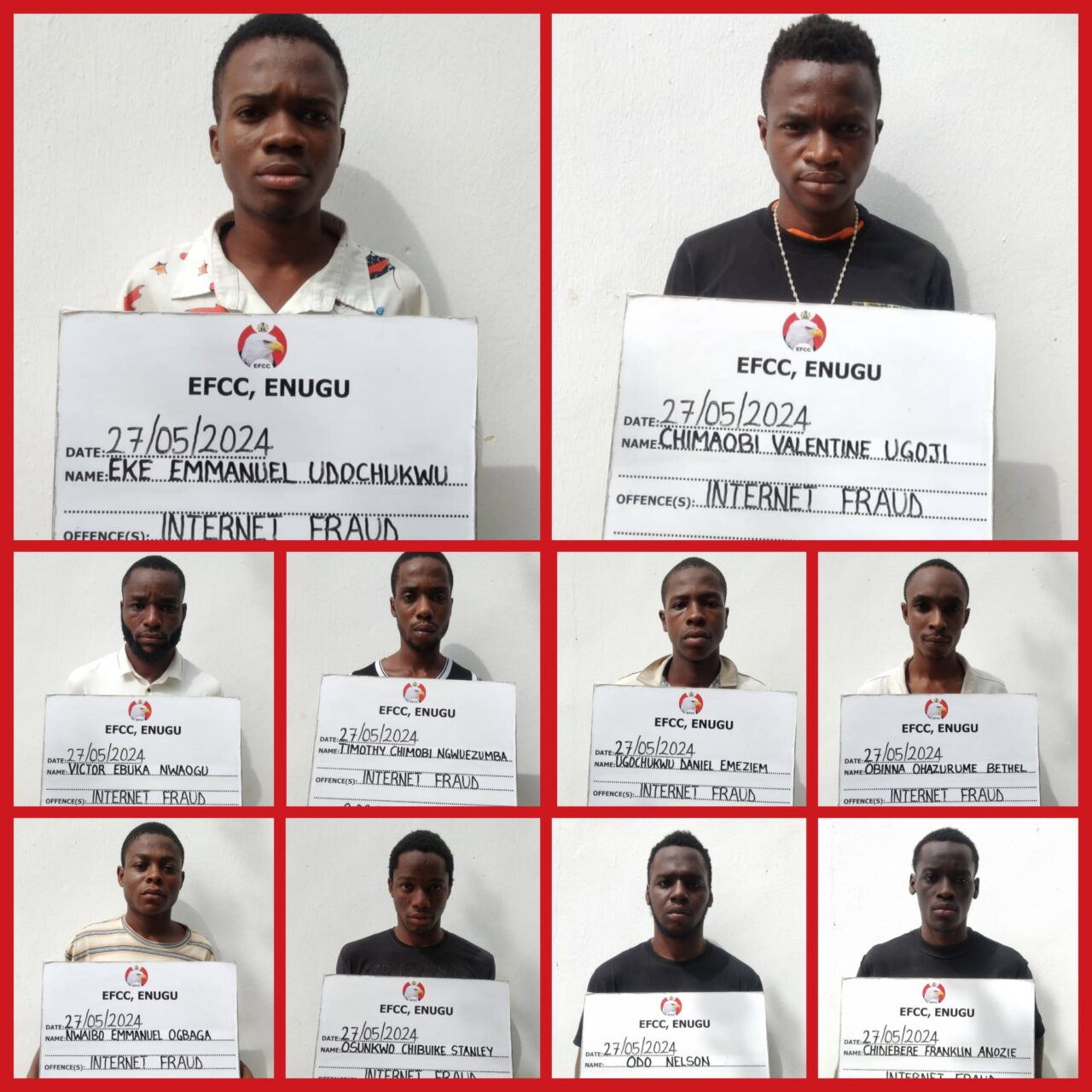 The Enugu Zonal Command of the Economic and Financial Crimes Commission, EFCC arrested the internet fraudsters.