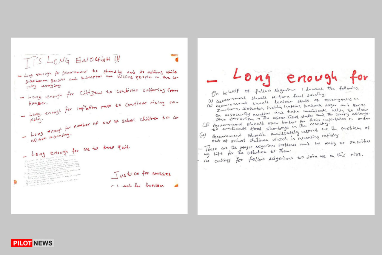 As he ascended the mast, Yusuf held a handwritten note that mentioned his frustration with the recent removal of fuel subsidy and the persistent kidnapping and insecurity in the country (see photo).
