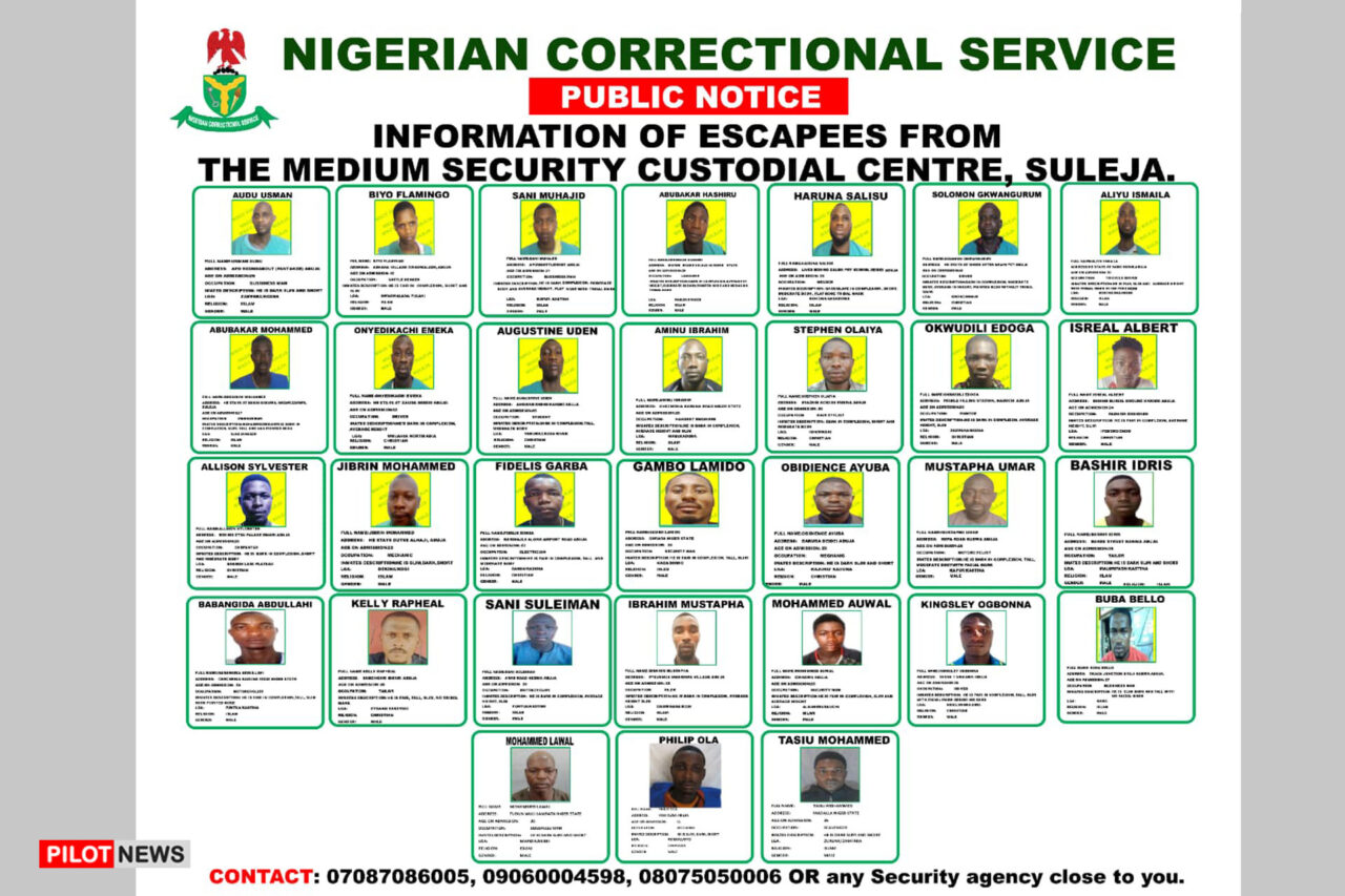 The Nigerian Correctional Service (NCoS) on Thursday released the pictures, names, and other information about 31 inmates who escaped from the Medium Security Custodial Centre, Suleja, FCT Command.