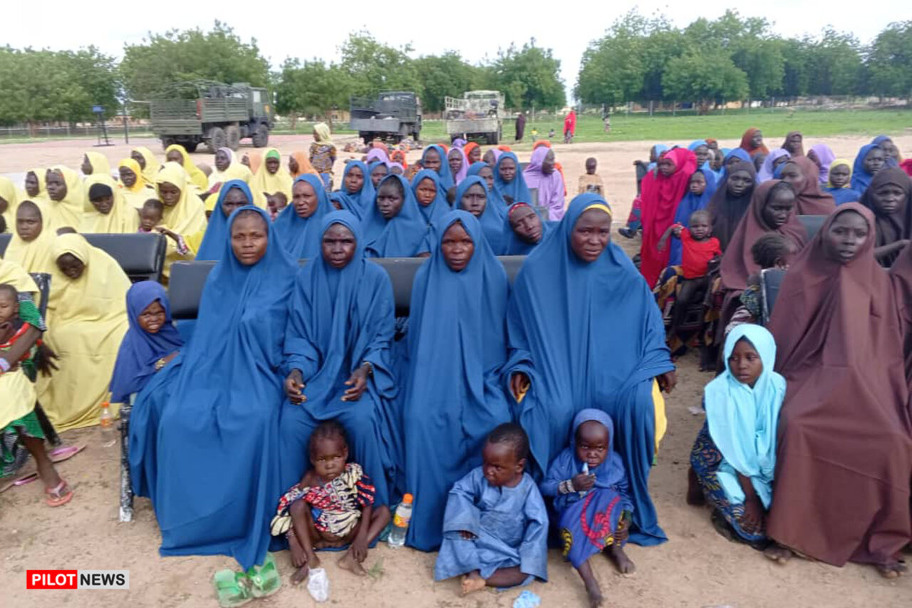 Over 330 women and children including a Chibok schoolgirl, Ihyi Abdul with her two children who were rescued from enclaves of the insurgents have been handed over to the Borno State government.