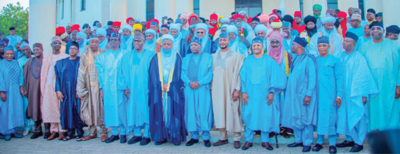 Also in attendance are traditional rulers, comprising the Sultan of Sokoto, Alhaji Muhammad Sa’ad Abubakar III; Shehu of Borno, Alhaji Abubakar Ibn Umar Garba Al- Amin El-Kanemi; Emir of Zazzau, Ambassador Ahmad Nuhu Bamalli; Ohinoyi of Ebira land, Alhaji Ahmed Tijani Anaje; Etsu Nupe, Alhaji Yahaya Abubakar; Emir of Kazaure, Alhaji Najib Hussaini Adamu; Emir of Bauchi, Alhaji Rilwanu Sulaiman Adamu, among others.