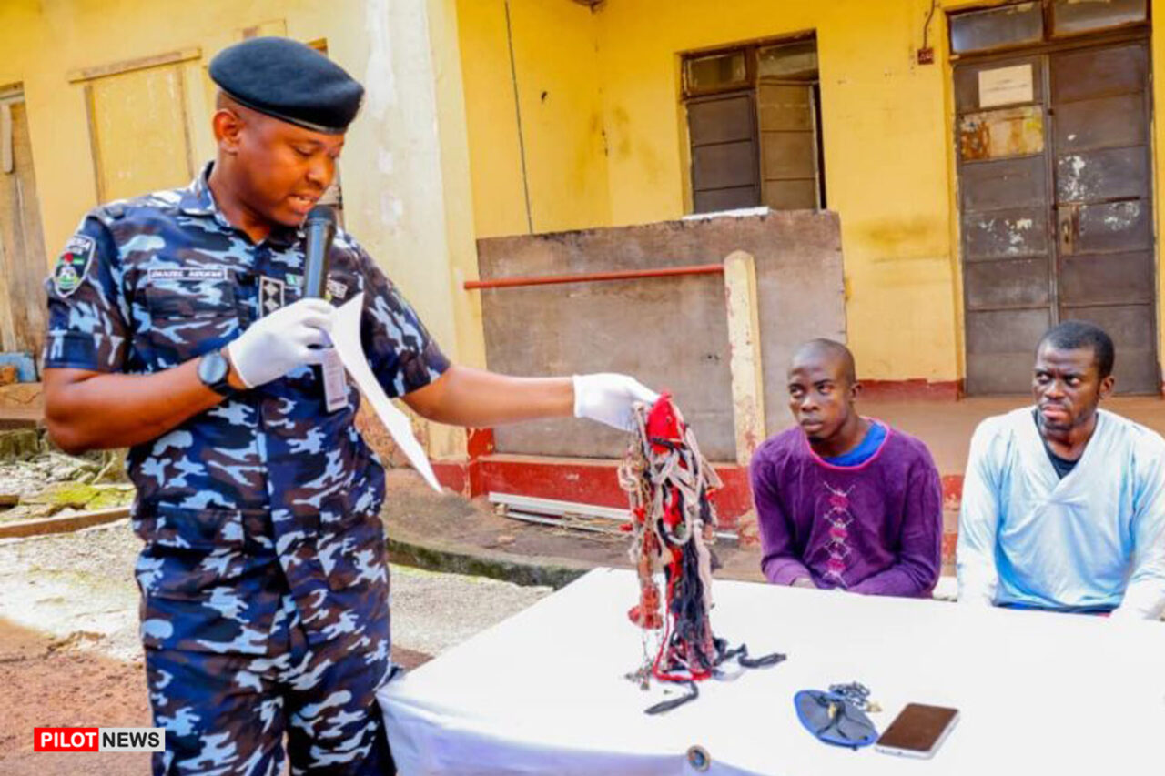 The two male suspects are Chukwudi Aboshi, a 28-year-old native of Anike in Ikwo Local Government Area of Ebonyi State, and Ani Innocent Ebuka (a.k.a. Excellent), a driver and native of Isigwe-Ugbawka in Nkanu East Local Government Area.