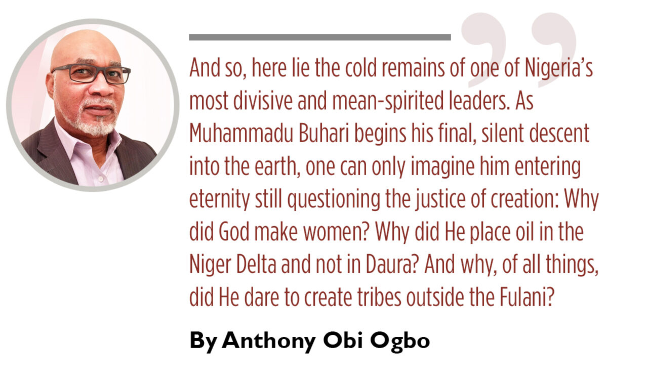 And so, here lie the cold remains of one of Nigeria’s most divisive and mean-spirited leaders — a man who brutalized the democratic process with the precision of a tyrant and the coldness of a man utterly void of remorse. As Muhammadu Buhari begins his final, silent descent into the earth, one can only imagine him entering eternity still questioning the justice of creation: Why did God make women? Why did He place oil in the Niger Delta and not in Daura? And why, of all things, did He dare to create tribes outside the Fulani?