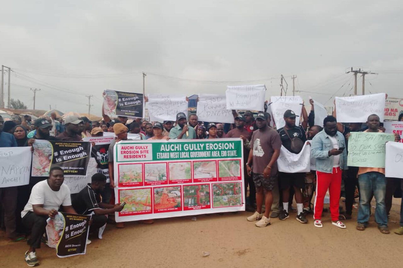 Youths in Auchi, headquarters of Etsako West Local Government Area of Edo State, on Monday staged a peaceful protest over gully erosion ravaging the community and incessant kidnapping in the area.