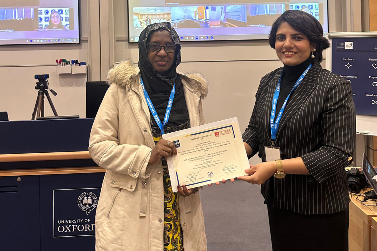The Vice Chancellor of Nasarawa State University, Keffi, Professor Sa’adatu Hassan Liman, has received an award and honourary fellowship at the Centre for Business and Economic Research (CBER) at the University of Oxford. The award was conferred on the Vice Chancellor at the 14th International Conference on Restructuring of the Global Economy (ROGE), which was held at the Said Business School, University of Oxford.