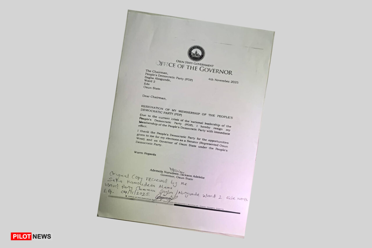 His resignation was conveyed in a letter dated November 4, 2025, and addressed to the Chairman of Ward 2 in Sagba Abogunde, Ede North LGA, Osun State.